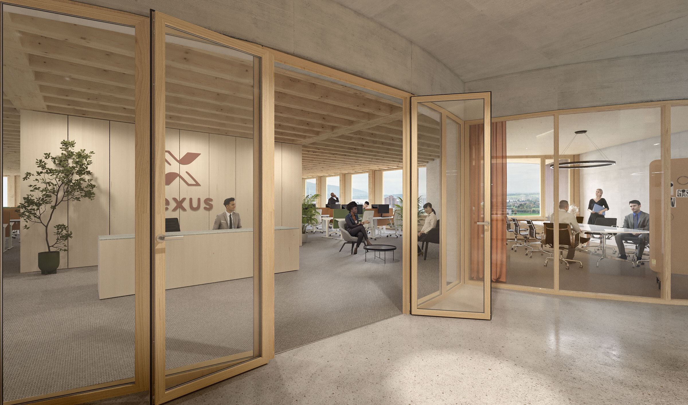 Inspirierende Büroarchitektur in der Zentralschweiz – im Nexus trifft konsequent nachhaltiges Bauen auf die Arbeitsräume der Zukunft: flexibel und einladend, zwanglos und offen, ein Hub für Kommunikation und produktives Miteinander, in dem Leben und Arbeiten eine Einheit bilden und Menschen in einem charakterstarken Headquarter oder einem spannenden Mix verschiedener Branchen zusammenkommen.